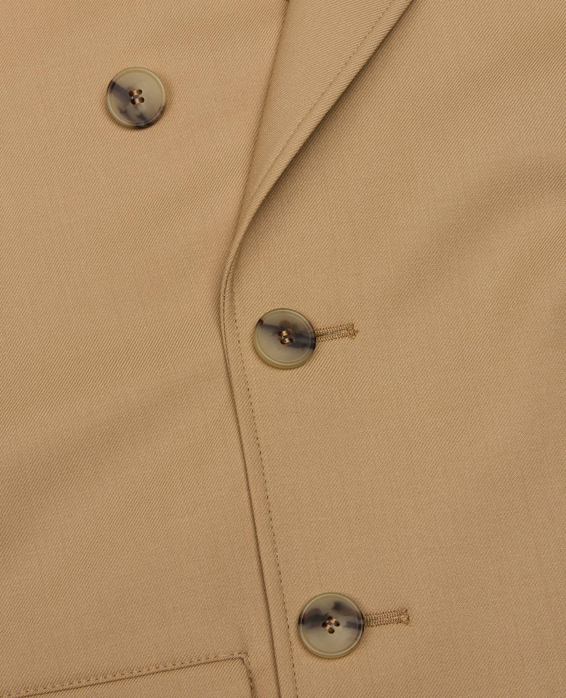 A timeless relaxed-fit double-breasted blazer with split certified viscose lining. Made of a wool blend and features two front pockets, a breast pocket, and a classic buttoned inner pocket. Closes with two rows of horn buttons.