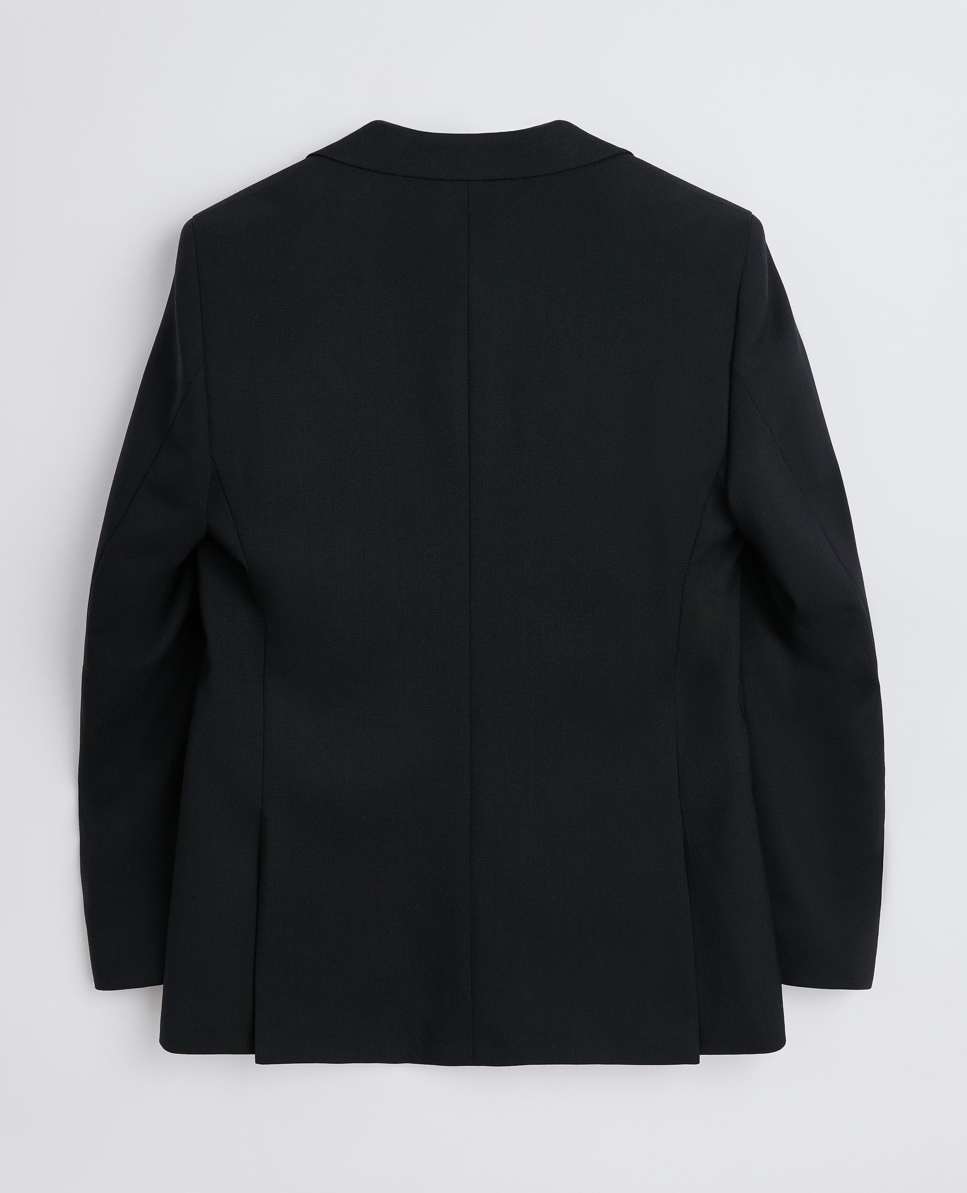 A single-breasted blazer with viscose lining in a casual fit. Features peak lapels and closes with horn buttons. Made of 100% Italian wool canvas.